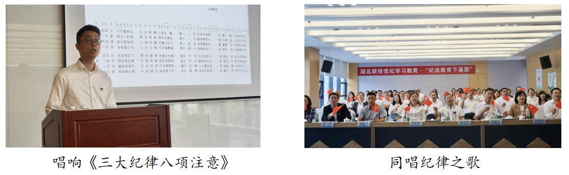 ???以案說紀(jì)一堂課、以物喻廉一幅畫、寓教于樂一支歌、抒懷詠志一首詩、警示寄語一句話、法規(guī)測試一張卷,紀(jì)法宣傳有聲有色,廉潔教育有滋有味。5月6日,湖北聯(lián)投黨紀(jì)學(xué)習(xí)教育·“紀(jì)法教育下基層”活動在東湖高新園區(qū)運(yùn)營板塊長沙區(qū)域公司舉行,以廣大黨員干部員工喜聞樂見的形式將“紀(jì)法套餐”送到基層一線。湖北聯(lián)投紀(jì)委副書記、黨委巡察辦主任張敏容出席活動并作專題黨課,湖北聯(lián)投紀(jì)委副書記胡志偉出席活動。