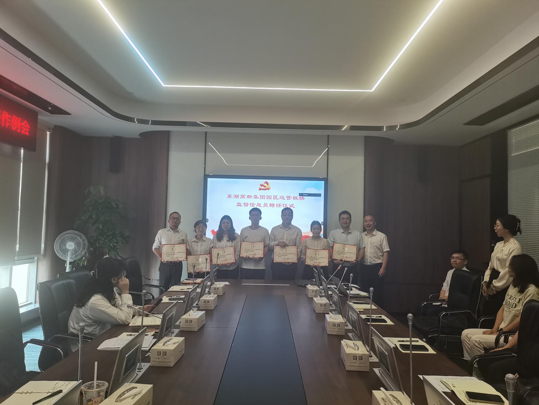 在監(jiān)督信息員聘任儀式上,會議傳達(dá)了《武漢東湖高新集團(tuán)股份有限公司監(jiān)督信息員管理暫行辦法》《園區(qū)運(yùn)營板塊監(jiān)督信息員工作實(shí)施辦法(試行)》,宣讀了東湖高新紀(jì)委《關(guān)于聘任江振華、龔玄等2名同志為武漢東湖高新集團(tuán)股份有限公司監(jiān)督信息員的決定》《關(guān)于聘任龐義、馬鋒等12名同志為武漢東湖集團(tuán)股份有限公司監(jiān)督信息員的決定》。姜玉林同志為7位新任監(jiān)督信息員代表頒發(fā)聘書,監(jiān)督信息員代表江振華、許玲玉作表態(tài)發(fā)言。