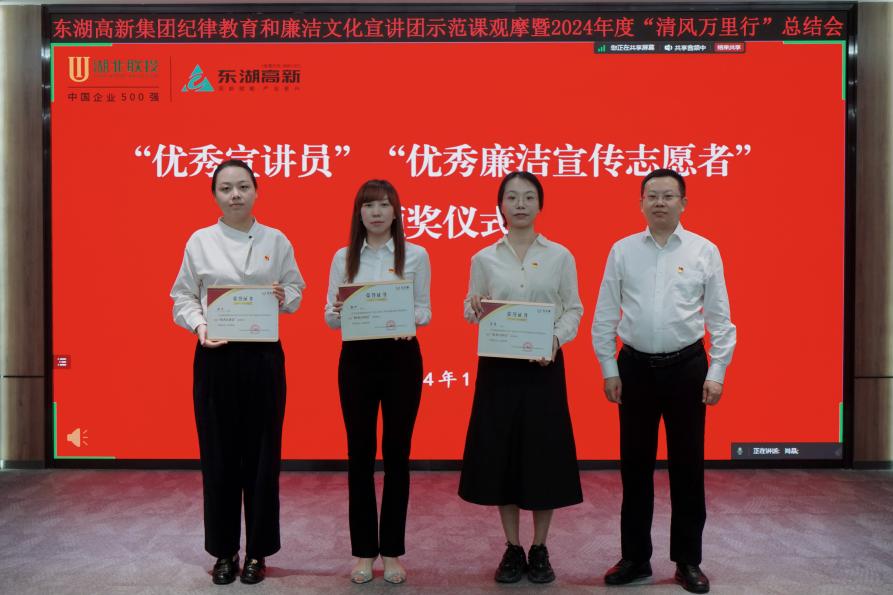 在2024年度“清風(fēng)萬里行”總結(jié)表彰環(huán)節(jié),會(huì)議宣讀了《關(guān)于表彰“優(yōu)秀宣講員”“優(yōu)秀廉潔宣傳志愿者”的決定》,并為“優(yōu)秀宣講員”獲獎(jiǎng)?wù)?、“?yōu)秀廉潔宣傳志愿者”獲獎(jiǎng)?wù)叽眍C發(fā)證書。